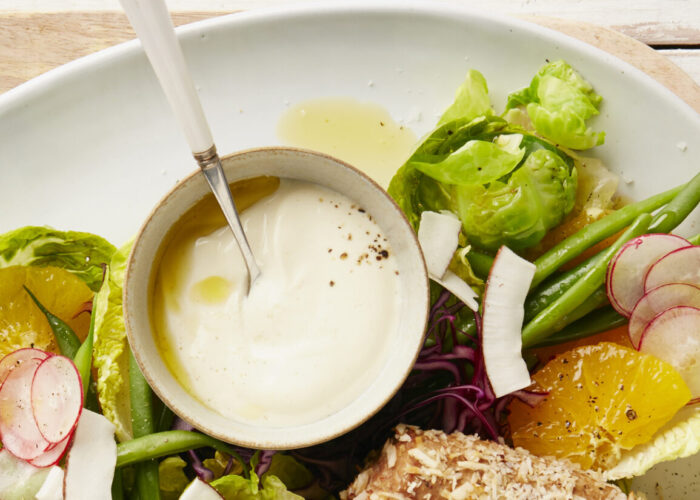 1. Combine lemon juice, coconut milk, green onions, basil, ginger and red pepper flakes.